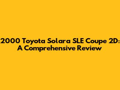 Hey guys! Today, we're diving deep into a classic – the 2000 Toyota Solara SLE Coupe 2D. This car was a hit back in the day, and it still holds a special place in the hearts of many car enthusiasts. Whether you're considering buying one, reminiscing about the good old days, or just curious about this iconic vehicle, you're in the right place. Let's get started!