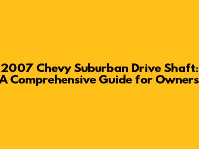 2007 Chevy Suburban Drive Shaft: A Comprehensive Guide for Owners