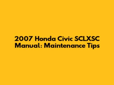 Understanding Your 2007 Honda Civic SCLXSC Manual