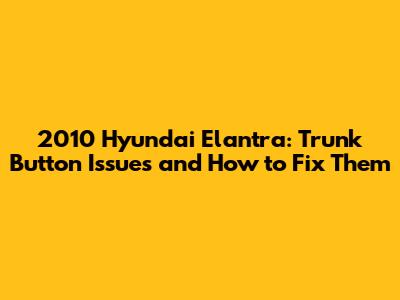 2010 Hyundai Elantra: Trunk Button Problems & Solutions