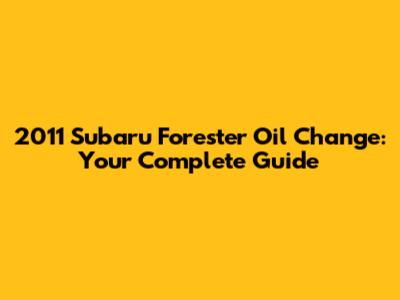 2011 Subaru Forester Oil Change: A Step-by-Step Guide