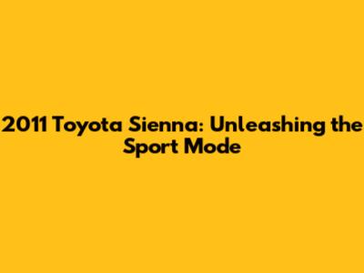 Hey guys! Ever wondered what that "Sport" button in your 2011 Toyota Sienna does? You're not alone! The 2011 Toyota Sienna is known as a reliable and versatile minivan, perfect for families and long road trips. But did you know it also has a Sport mode? This mode can change your driving experience, making it more engaging and responsive. In this article, we'll dive deep into the Sport mode of the 2011 Toyota Sienna, exploring how it works, when to use it, and what benefits it offers. So buckle up, and let's explore the sporty side of this family-friendly vehicle! Whether you're a seasoned Sienna owner or considering buying one, understanding the Sport mode can help you get the most out of your ride. Let's get started and unlock the secrets of the 2011 Toyota Sienna's Sport mode!