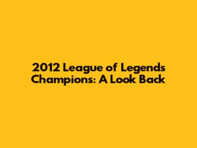 2012 League Of Legends Champions: A Look Back