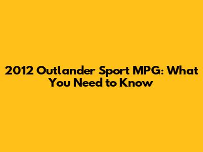 2012 Outlander Sport MPG: What You Need To Know