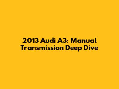 Hey there, car enthusiasts! Today, we're diving deep into the world of the 2013 Audi A3 with a manual transmission. For those of you who appreciate the art of driving and the connection you feel with a car when you're in control of the gears, this is the article for you. We'll explore everything from the driving experience to potential issues and maintenance tips to keep your A3 running smoothly for years to come.