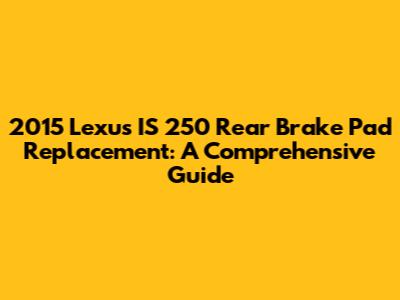There you have it! A complete guide to replacing the rear brake pads on your 2015 Lexus IS 250. Remember to take your time, be patient, and double-check your work. If you're ever in doubt, don't hesitate to consult a professional mechanic. Now you're ready to hit the road with confidence, knowing your brakes are in top shape. Drive safe, and happy wrenching! With the right knowledge and tools, you can keep your Lexus IS 250 running smoothly and safely for years to come. Isn't it satisfying to know you can take care of your car? This knowledge can save you money and give you a sense of accomplishment. Remember, regular maintenance is key to a long and happy driving life. Enjoy your upgraded braking performance!