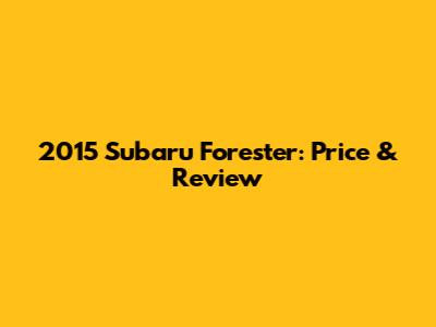 2015 Subaru Forester: Price & Review