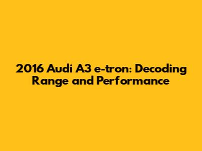 Hey car enthusiasts! Ever wondered about the 2016 Audi A3 e-tron's capabilities, especially its electric range? Let's dive deep and explore everything about this slick plug-in hybrid, from its impressive performance to its real-world efficiency. We'll break down the numbers, discuss the driving experience, and see what makes the A3 e-tron a cool choice in the hybrid world. So, buckle up; it's going to be a fun ride!