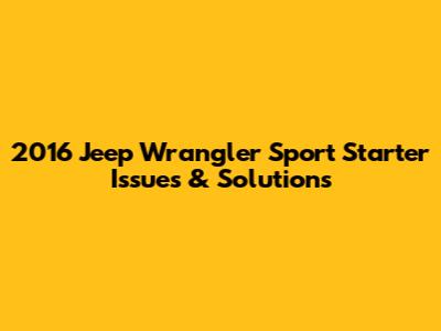 2016 Jeep Wrangler Sport: Starter Issues & Solutions