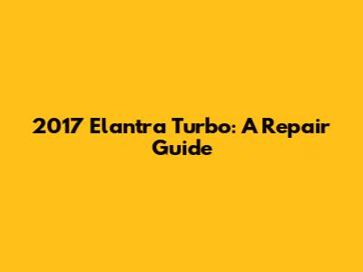 2017 Elantra Turbo: A Repair Guide