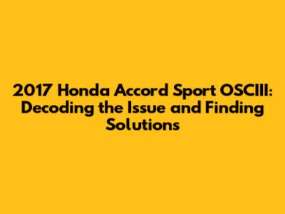 Hey everyone! If you're here, chances are you're scratching your head over the dreaded OSCIII error on your 2017 Honda Accord Sport. Don't worry, you're definitely not alone. This is a pretty common hiccup, and we're going to break down what it is, why it happens, and most importantly, how to get your ride back in tip-top shape. This guide is your go-to resource, covering everything from understanding the OSCIII code to practical troubleshooting steps and when to call in the pros. So, buckle up, and let's dive into the world of Honda Accord Sport maintenance and diagnostics!
