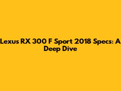 Hey guys! Let's dive into the details of the Lexus RX 300 F Sport 2018 specs. If you're curious about what makes this car tick, you're in the right place. We'll cover everything from engine performance to interior features, ensuring you get a comprehensive overview.