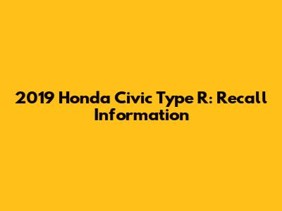 2019 Honda Civic Type R: Recall Information