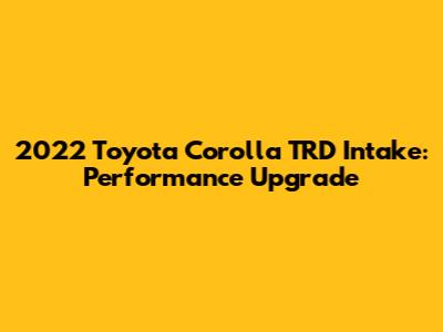 2022 Toyota Corolla TRD Intake: Performance Upgrade