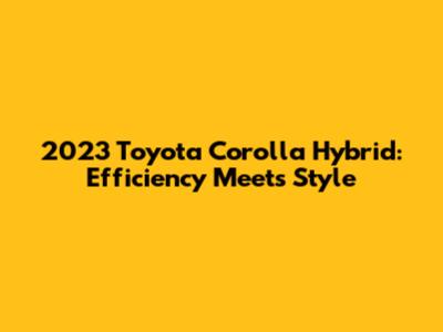 2023 Toyota Corolla Hybrid: Efficiency Meets Style