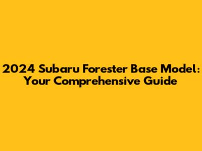 The 2024 Subaru Forester base model provides a solid foundation with its blend of performance, safety, and practicality. While it may not have all the bells and whistles of the higher trims, it offers excellent value for those seeking a reliable and capable SUV. With its standard all-wheel drive, advanced safety features, and comfortable interior, the Forester base model is well-equipped to handle daily commutes, family adventures, and everything in between. Keep an eye out for specific updates and enhancements as Subaru releases more details, ensuring you're fully informed before making your purchase decision. Whether you're a first-time buyer or a seasoned SUV enthusiast, the Forester base model is definitely worth considering for its all-around capabilities and dependable performance.