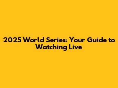 2025 World Series: Watch Live Online