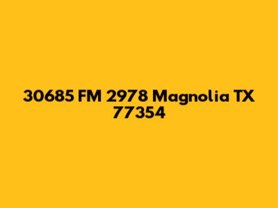 Let's dive into everything you need to know about 30685 FM 2978 Magnolia, TX 77354. Whether you're planning a visit, considering a move, or just curious about this specific address, this guide will provide you with a comprehensive overview. We'll cover location insights, nearby amenities, local attractions, and essential community information. So, let's get started and explore what makes this spot in Magnolia, Texas, so special!