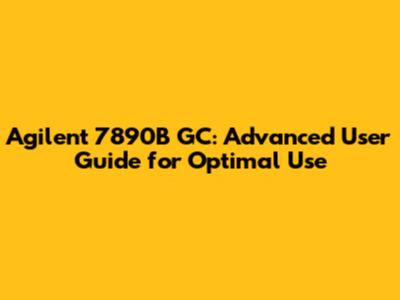 Agilent 7890B GC: Advanced User Guide For Optimal Use
