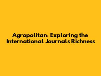Agropolitan: The International Journal's Deep Dive
