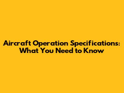 Aircraft Operation Specs: What You Need To Know