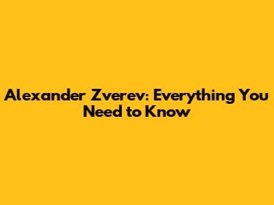 Alexander Zverev: Everything You Need To Know