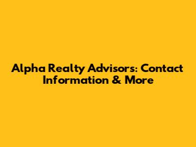 Alpha Realty Advisors: Contact Information & More
