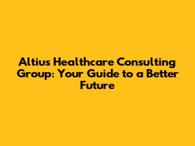 Altius Healthcare Consulting Group: Your Guide To A Better Future