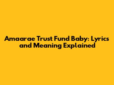 Hey guys! Ever wondered about the story behind Amaarae's hit, "Trust Fund Baby"? This song is a whole mood, blending catchy beats with lyrics that hint at a lavish lifestyle and complex relationships. Let's dive into the lyrics and explore what this banger is all about. Whether you're a die-hard fan or just discovering Amaarae, understanding the nuances of "Trust Fund Baby" will definitely enhance your appreciation for her unique artistry. We'll break down the verses, chorus, and everything in between, so you can sing along with confidence and impress your friends with your newfound knowledge. Get ready to unlock the secrets of this amazing track!