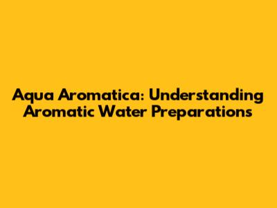 Aqua Aromatica: Understanding Aromatic Water Preparations