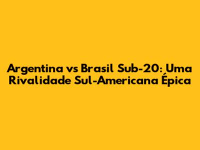 Argentina Vs Brasil Sub-20: Uma Rivalidade Sul-Americana Épica