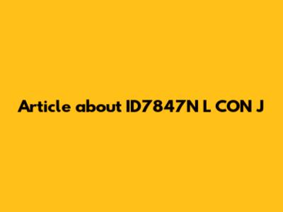 • If this is a manufacturing part number, ID7847N L CON J might mean: "Item Identification number 7847, specifically the 'L' variant, with 'CON' configuration, and the 'J' feature set." This could refer to a specific type of electronic component used in a particular device model.