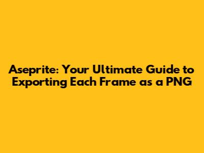 Aseprite: Your Guide To Exporting Each Frame As A PNG