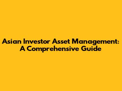 Asian Investor Asset Management: A Comprehensive Guide