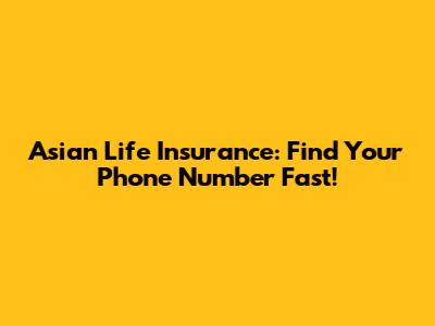 Asian Life Insurance: Find Your Phone Number Fast!