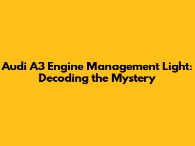 Audi A3 Engine Management Light: Troubleshooting & Solutions