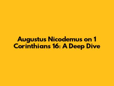 Hey guys! Let's dive into something super interesting today: Augustus Nicodemus's insights on 1 Corinthians 16. This chapter, tucked away in Paul's first letter to the Corinthians, is packed with practical advice and timeless wisdom. We'll explore what Nicodemus, a well-respected figure, has to say about it, breaking down the key themes and takeaways. Get ready to gain a fresh perspective on topics like financial giving, Timothy's visit, and some final instructions from the Apostle Paul. Trust me, it's going to be a fascinating journey!