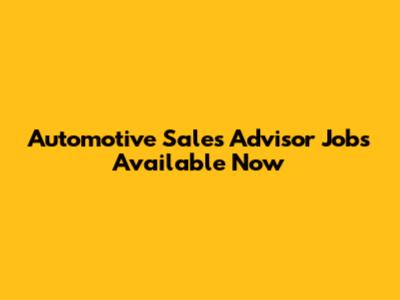 Automotive Sales Advisor Jobs Available Now