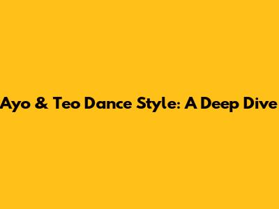 Ayo & Teo's Dance Style: A Deep Dive