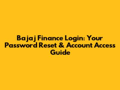 Bajaj Finance Login: Password Reset & Account Access Guide
