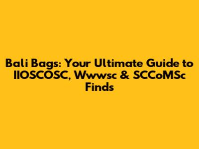 Bali Bags: Your Guide To IIOSCOSC, Wwwsc & SCCoMSc Finds