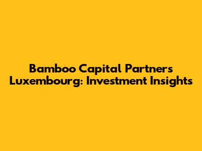 Bamboo Capital Partners Luxembourg: Investment Insights
