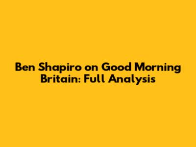 Ben Shapiro On Good Morning Britain: Full Analysis