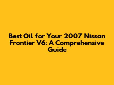 Best Oil For Your 2007 Nissan Frontier V6: A Comprehensive Guide