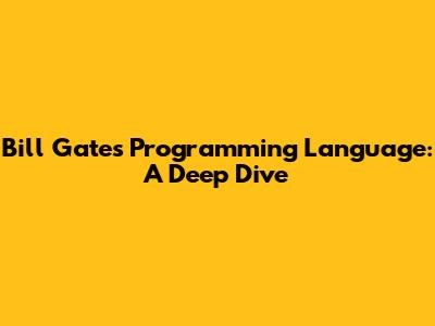Bill Gates' Programming Language: A Deep Dive