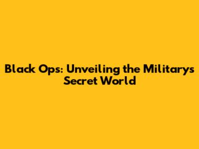 Black Ops: Understanding Military's Secret Missions