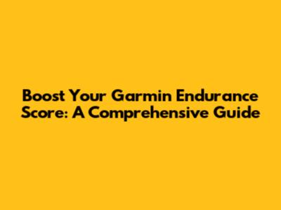 Boost Your Garmin Endurance Score: A Comprehensive Guide