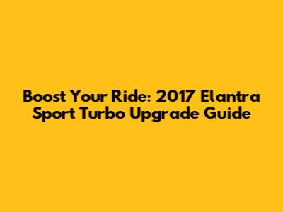 Boost Your Ride: 2017 Elantra Sport Turbo Upgrade Guide
