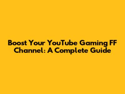 Boost Your YouTube Gaming FF Channel: A Complete Guide