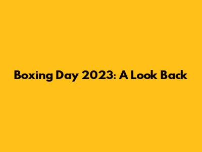 Boxing Day 2023: A Look Back